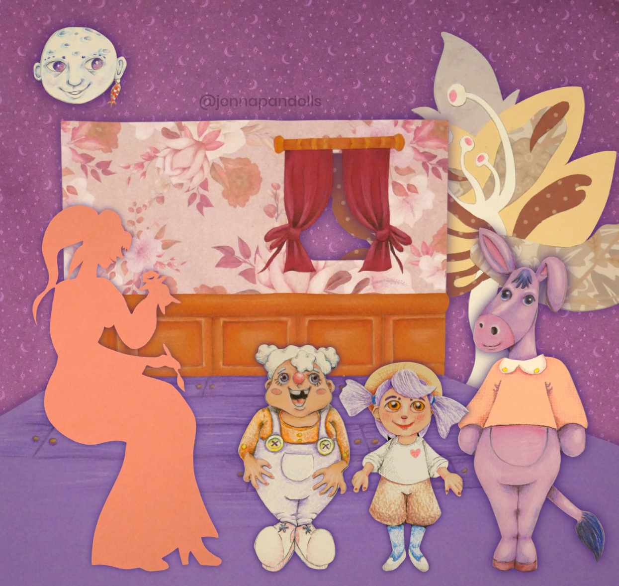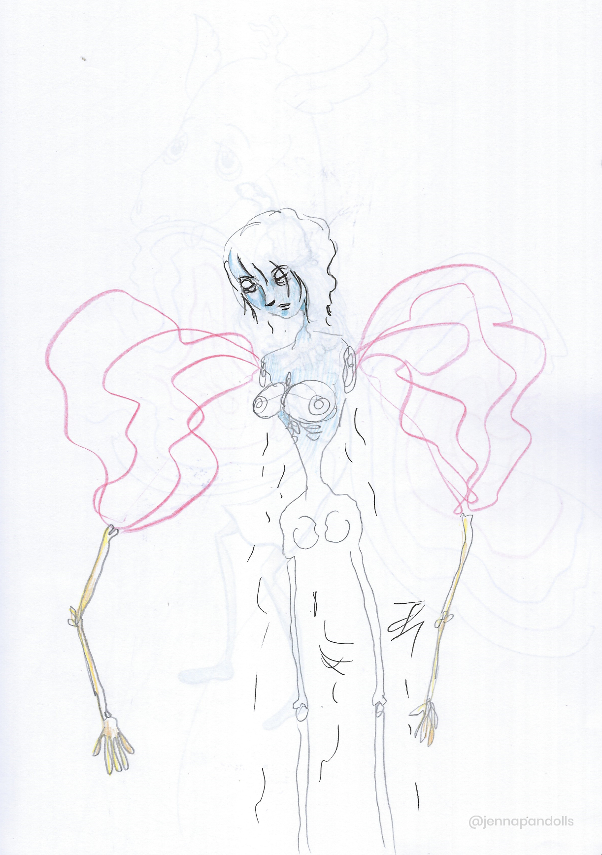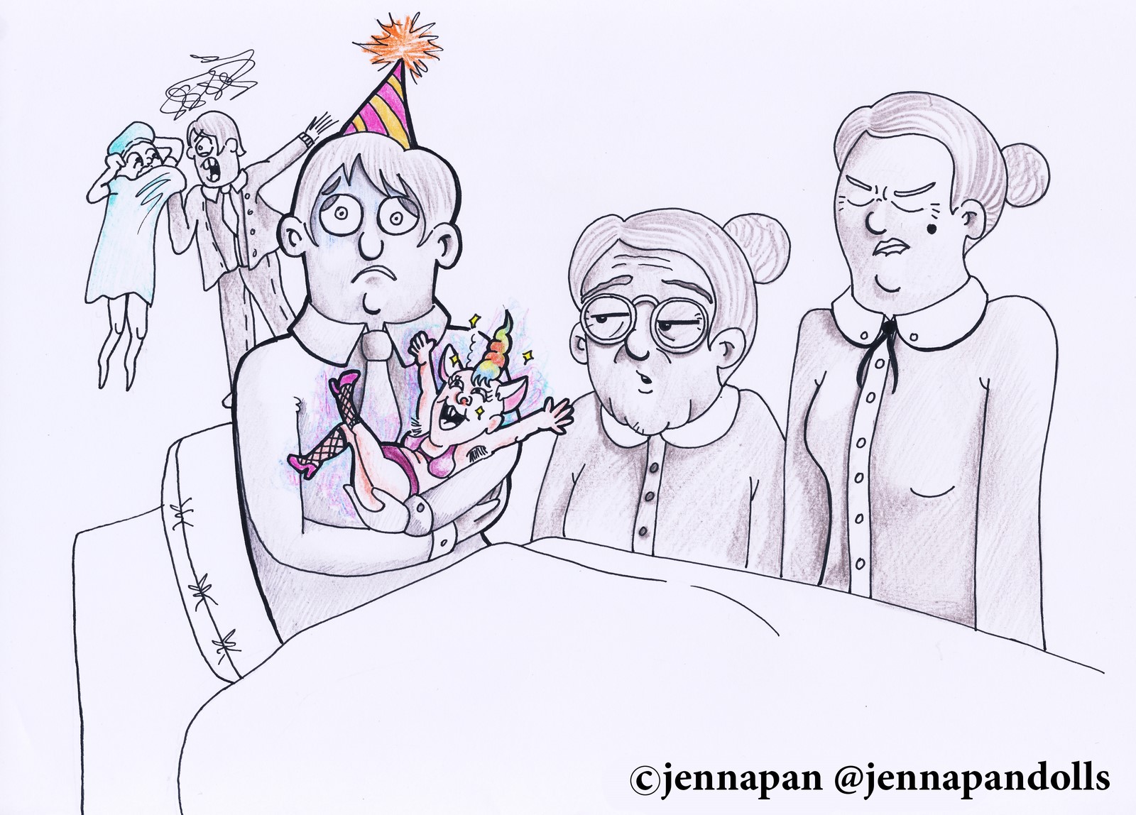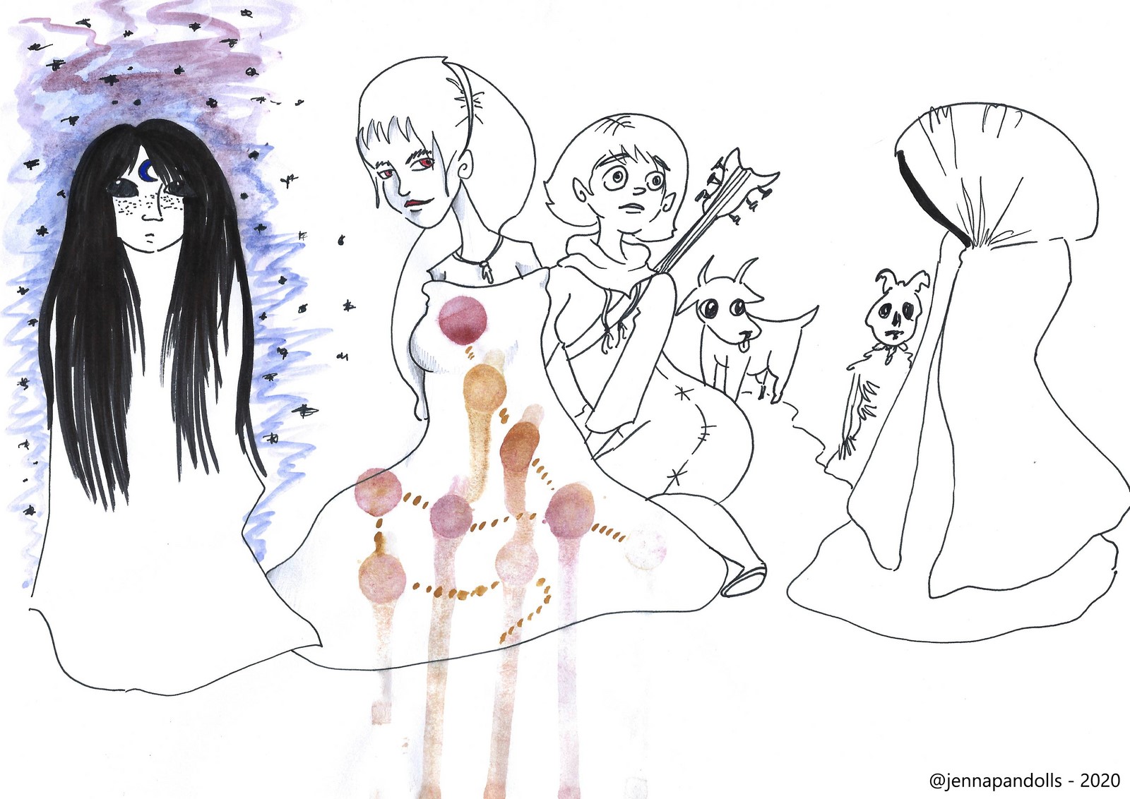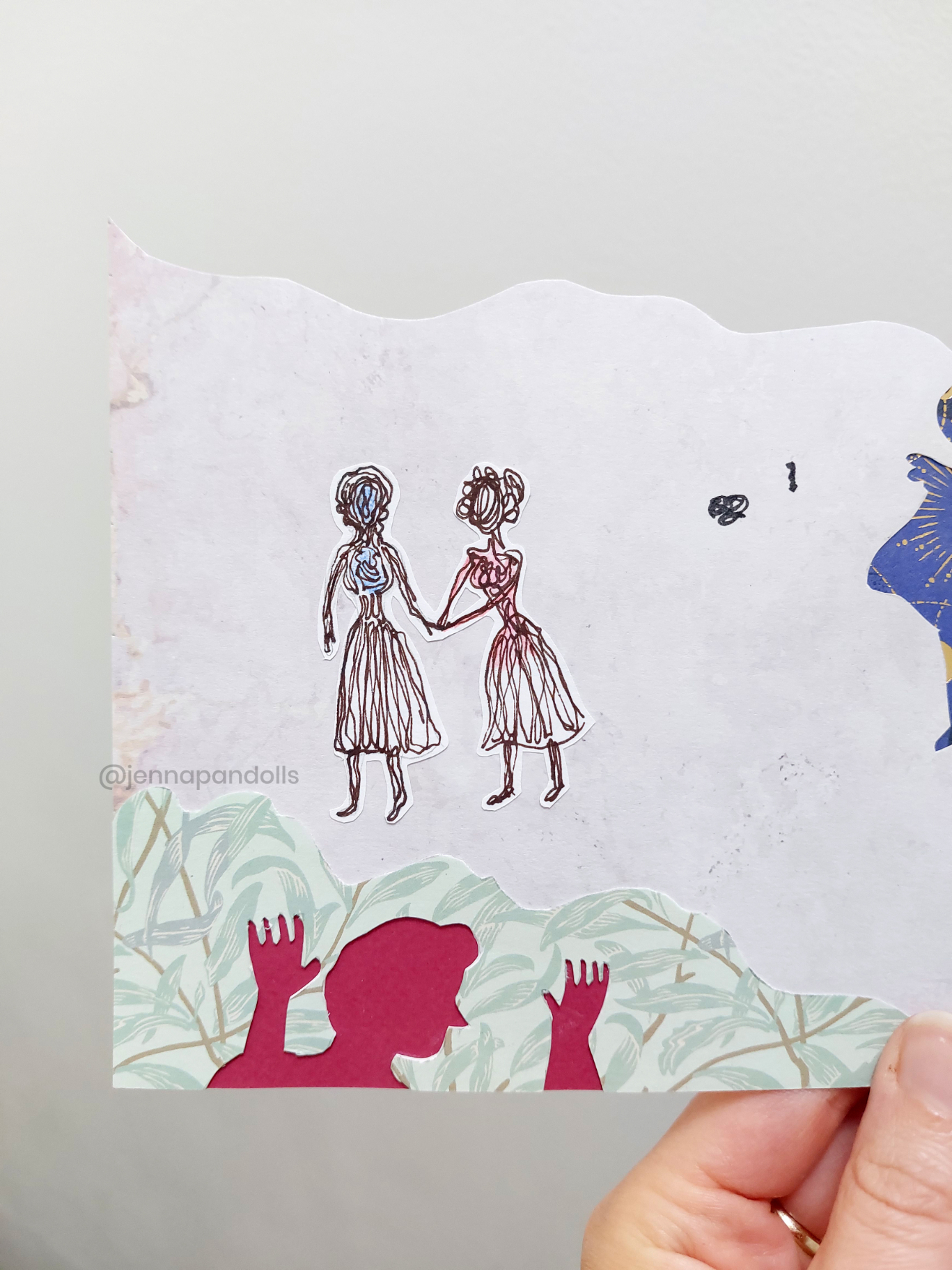Day (website background), 2025Paper collage, stylized with felt tips, pencils and acrylics. Night (website background), 2025Paper collage, stylized with felt tips, pencils and acrylics. Countryside life, 2024Paper doll house with two flaps, two detached characters and several pieces of furniture. Drawn with pencils and coloured felt tips. I have a problem doctor, 2019Drawn by hand with black felt tips, and coloured-in with graphic design software. Chicken Boi, 2021Paper doll articulated with split pins. Painted with watercolours. About 20 cm. Louisa, 2021Paper doll articulated with split pins. Painted with watercolours. About 20 cm. Wanda, 2021Paper doll articulated with split pins. Painted with watercolours. About 20 cm. Sketches and Scenes, 202412 Images Felt tips and pencils. Nothing can keep me warm anymore, 2024What to do now?, 2024Inner struggle, 2024Severe, 2024Powerless, 2024Carrying waves, 2024Conversation, 2024When you're grounded, 2024Flower fairy, 2024Did you really think that?, 2024Through my eyes, 2024 Congratulations, you're an artist!, 2019Black felt tip and pencils. The Archer, 2022Drawn by hand with pencil, and coloured-in with graphic design software. The Artsy Clown, 2020Submitted to Poppen Atelier for her big 500k subscribers collab on her youtube channel. Under the Moon, 2025Paper collage, stylized with felt tips, pencils and acrylics. Under the Moon, 2025 Something there, 2025Paper collage, stylized with felt tips, pencils and acrylics. Sketches and Scenes, 2020-20216 images. Felt tips and watercolour. Regrets, 2020Scenes 1, 2020Esprits, 2021Quest, 2020Scènes 2, 2020 Business Cards2 images. Drawn by hand with black felt tips, and coloured-in with graphic design software. Business cards, 2019 Illustrations for catalogues and websites7 images. Drawn by hand with black felt tips, and coloured-in with graphic design software. Back cover of the catalogue Jenna Pan 2015-2020Ernest le Modeste, 2020Drawings from "Jenna Pan 2015-2020" catalogueTemporary website banner, 2025Website banner part 2, 2019Website banner part 1, 2019