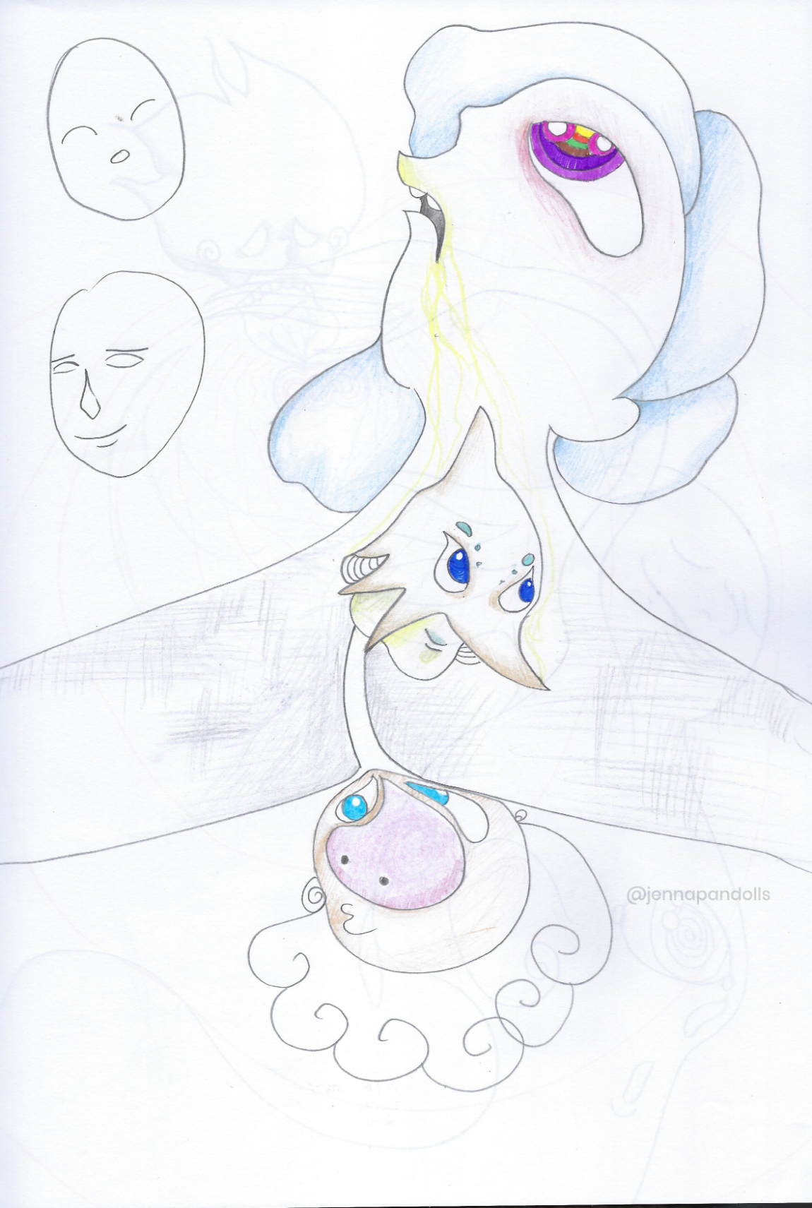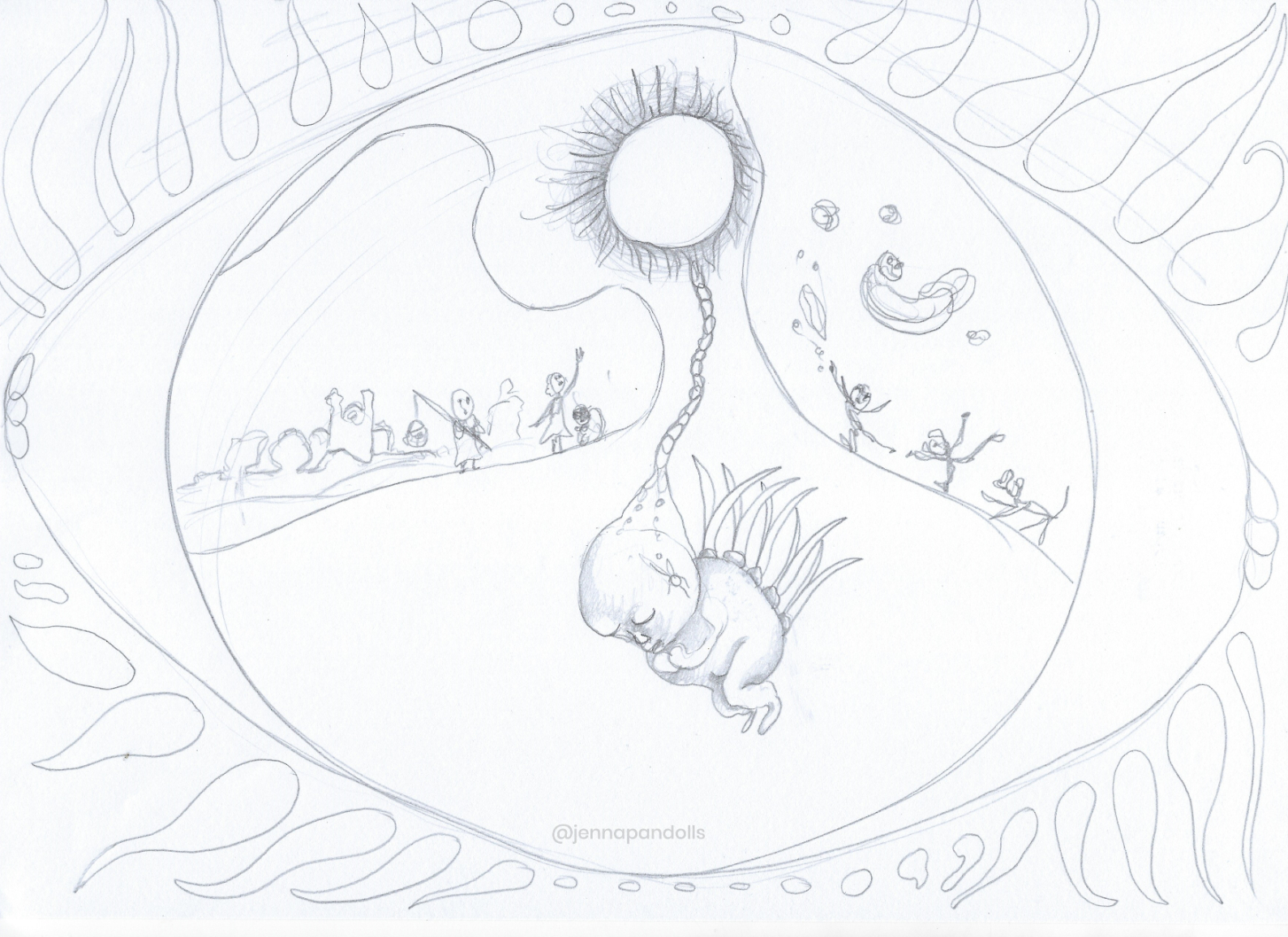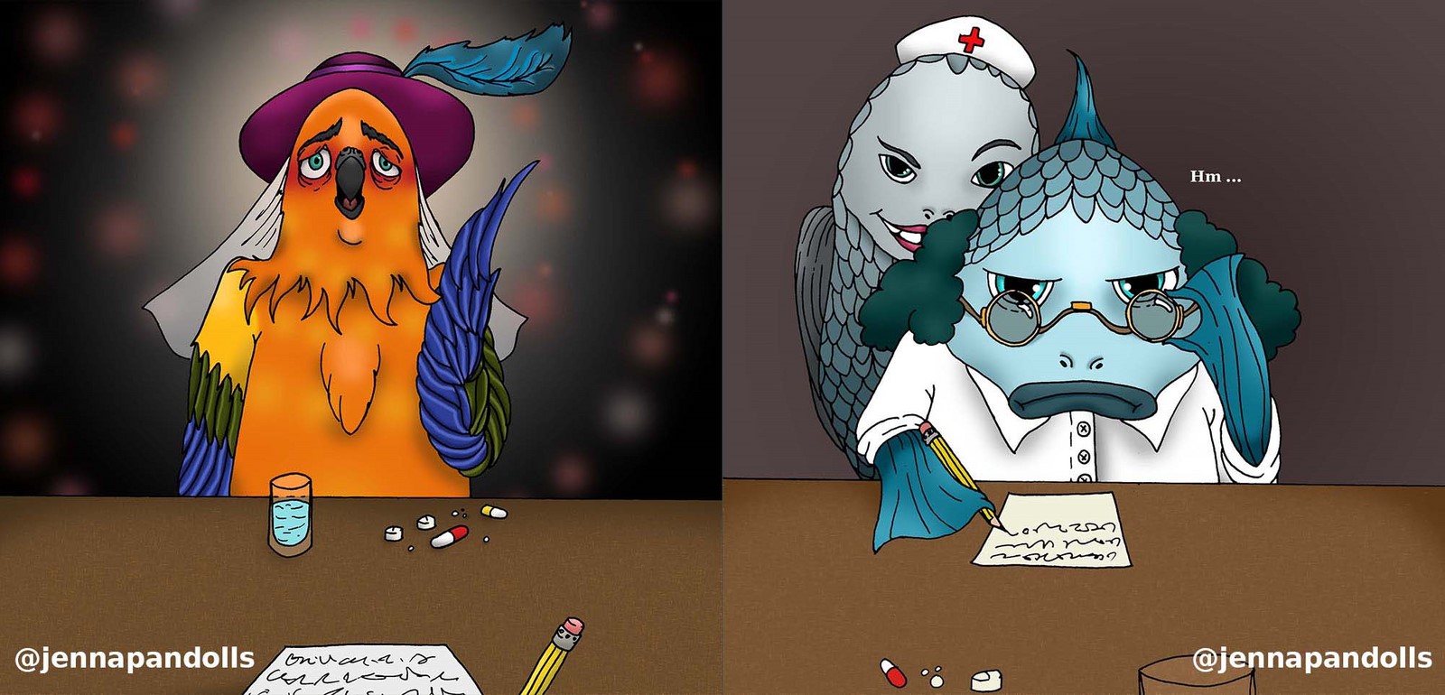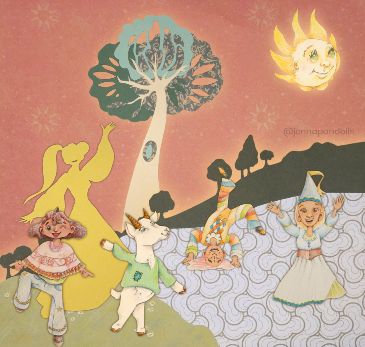Day (website background), 2025Paper collage, stylized with felt tips, pencils and acrylics. Night (website background), 2025Paper collage, stylized with felt tips, pencils and acrylics. Countryside life, 2024Paper doll house with two flaps, two detached characters and several pieces of furniture. Drawn with pencils and coloured felt tips. I have a problem doctor, 2019Drawn by hand with black felt tips, and coloured-in with graphic design software. Chicken Boi, 2021Paper doll articulated with split pins. Painted with watercolours. About 20 cm. Louisa, 2021Paper doll articulated with split pins. Painted with watercolours. About 20 cm. Wanda, 2021Paper doll articulated with split pins. Painted with watercolours. About 20 cm. Sketches and Scenes, 202412 Images Felt tips and pencils. Nothing can keep me warm anymore, 2024What to do now?, 2024Inner struggle, 2024Severe, 2024Powerless, 2024Carrying waves, 2024Conversation, 2024When you're grounded, 2024Flower fairy, 2024Did you really think that?, 2024Through my eyes, 2024 Congratulations, you're an artist!, 2019Black felt tip and pencils. The Archer, 2022Drawn by hand with pencil, and coloured-in with graphic design software. The Artsy Clown, 2020Submitted to Poppen Atelier for her big 500k subscribers collab on her youtube channel. Under the Moon, 2025Paper collage, stylized with felt tips, pencils and acrylics. Under the Moon, 2025 Something there, 2025Paper collage, stylized with felt tips, pencils and acrylics. Sketches and Scenes, 2020-20216 images. Felt tips and watercolour. Regrets, 2020Scenes 1, 2020Esprits, 2021Quest, 2020Scènes 2, 2020 Business Cards2 images. Drawn by hand with black felt tips, and coloured-in with graphic design software. Business cards, 2019 Illustrations for catalogues and websites7 images. Drawn by hand with black felt tips, and coloured-in with graphic design software. Back cover of the catalogue Jenna Pan 2015-2020Ernest le Modeste, 2020Drawings from "Jenna Pan 2015-2020" catalogueTemporary website banner, 2025Website banner part 2, 2019Website banner part 1, 2019